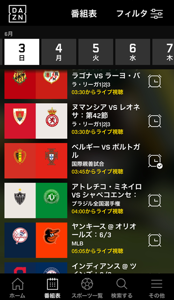 番組表から選んだのは、6月3日(日)3:45から行われるベルギー対ポルトガル!欧州強豪による注目対決だ。