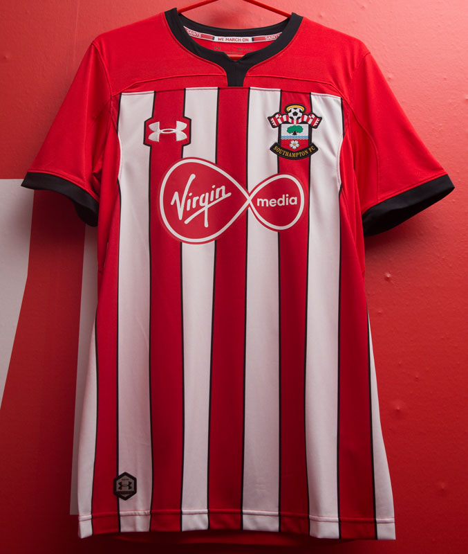 昨季は消えてしまったストライプが復活したホームキット。Under Armourがサプライヤーを担当して3シーズン目だが、これまでで最もサウサンプトンらしいデザインに仕上がった印象だ。胸スポンサーは「Virgin Media」で継続。