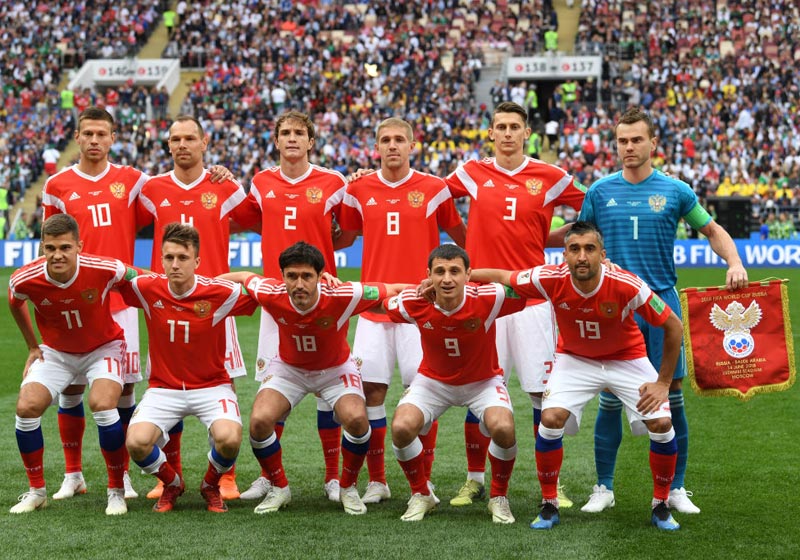 ロシア代表はホームキット。上から「赤-白-赤」を着用。ソックスは白・青・赤のロシア国旗カラーバージョンだった。