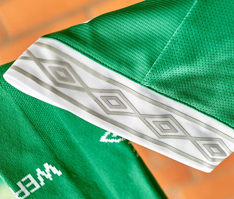 新しいホームキットは、原点に立ち戻ったかのようなグリーンとホワイトのシンプルなカラーコンビネーション。エンブレム上の星もゴールではなくホワイトであしらっている。