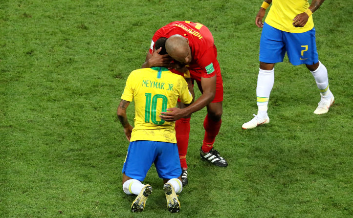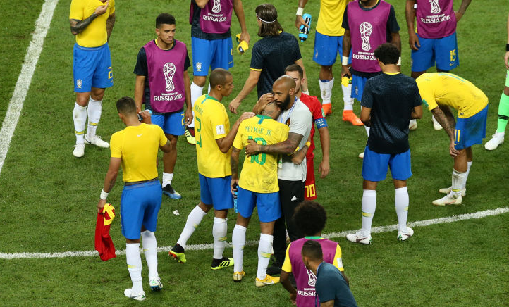 敗退にうなだれるブラジル代表FWネイマール。彼のもとにベルギー代表のコーチであるティエリ・アンリ、そしてMFエデン・アザールらが歩み寄り、ハグを交わしていたのだ。