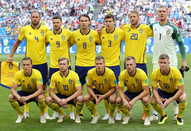 スウェーデン代表はホームキットで、上から「黄-青-黄」を着用。GKも含めて決勝トーナメント1回戦と同じキットを使用した。