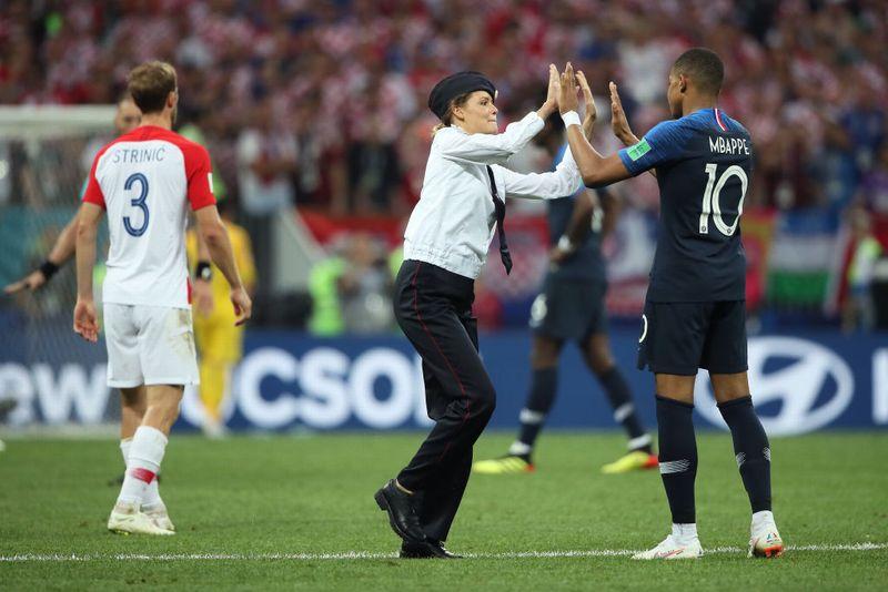 NEWS FLASH! Just a few minutes ago four Pussy Riot members performed in the FIFA World Cup final match — ”Policeman enters the Game”https://t.co/3jUi5rC8hh pic.twitter.com/W8Up9TTKMA