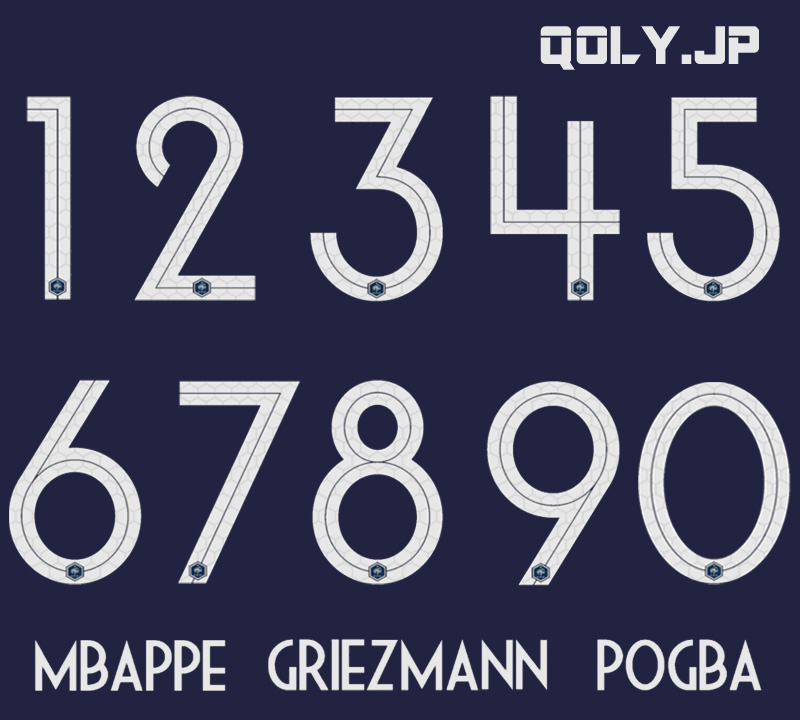 フランス代表のネームナンバーも紹介。画像は通常版のデザインだが、W杯では六角形の模様が無いバージョンが使われていた。