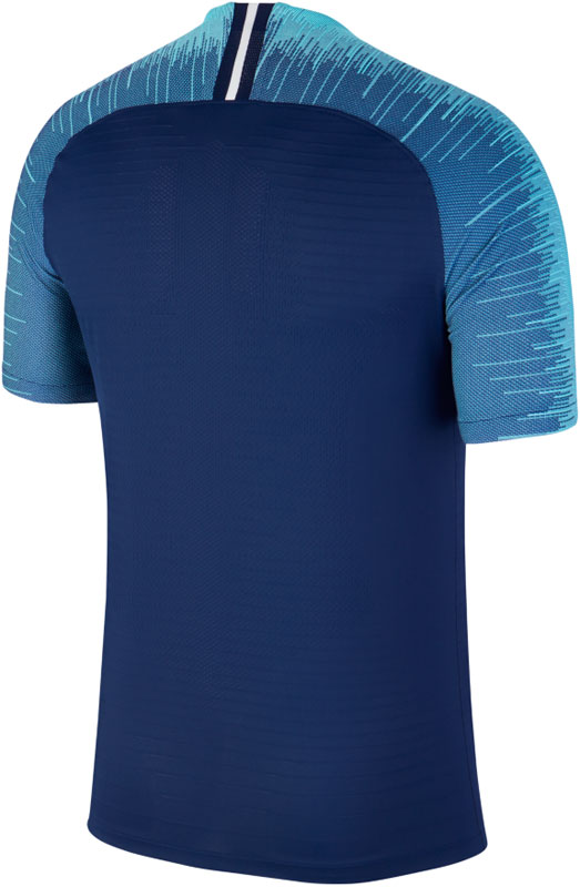新しいアウェイは定番のネイビーを基調に明るめブルーという組み合せ。今までのトッテナムのキットには見られなかったカラーコンビネーションが完成した。