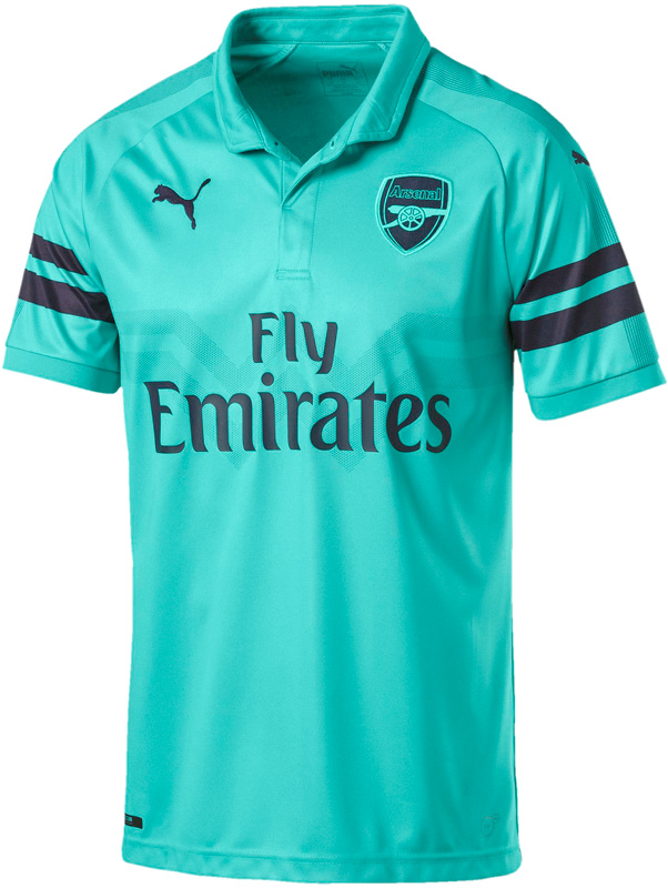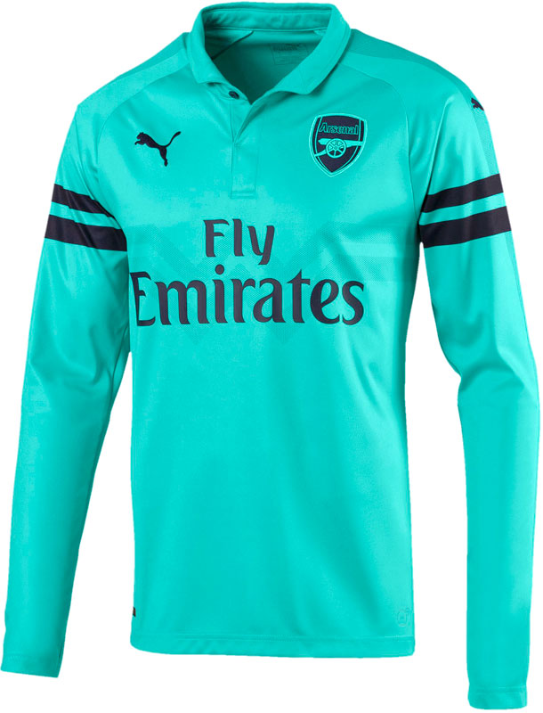新しいサードキットは、アーセナルではかなり珍しくグリーン系。エメラルドグリーンよりも少し淡いビスケーグリーンを採用している。グリーンは初めて採用されたUmbro製1982-83アウェイキット以来、36年ぶり2度目の登場となる。