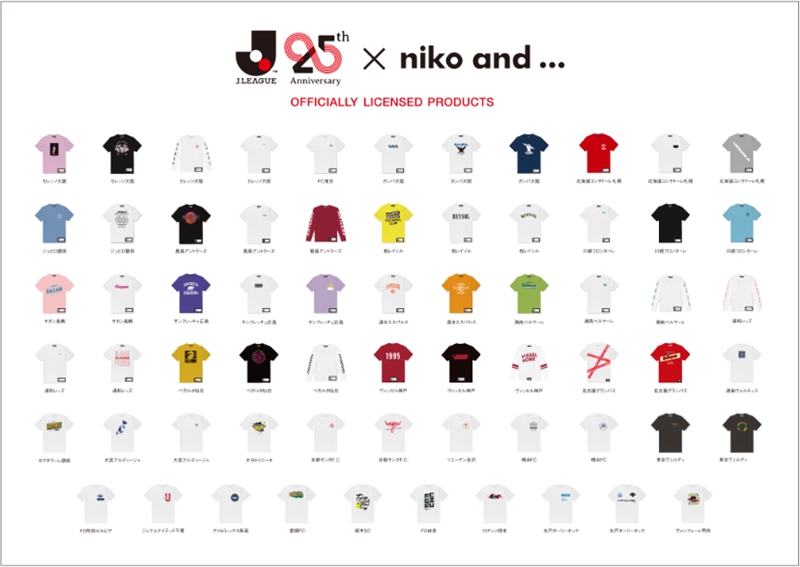 株式会社アダストリアが展開するライフスタイル提案型ブランド『niko and ... (ニコアンド)』がJリーグ25周年を記念し、33クラブとコラボレーションしたオリジナルTシャツだ。
