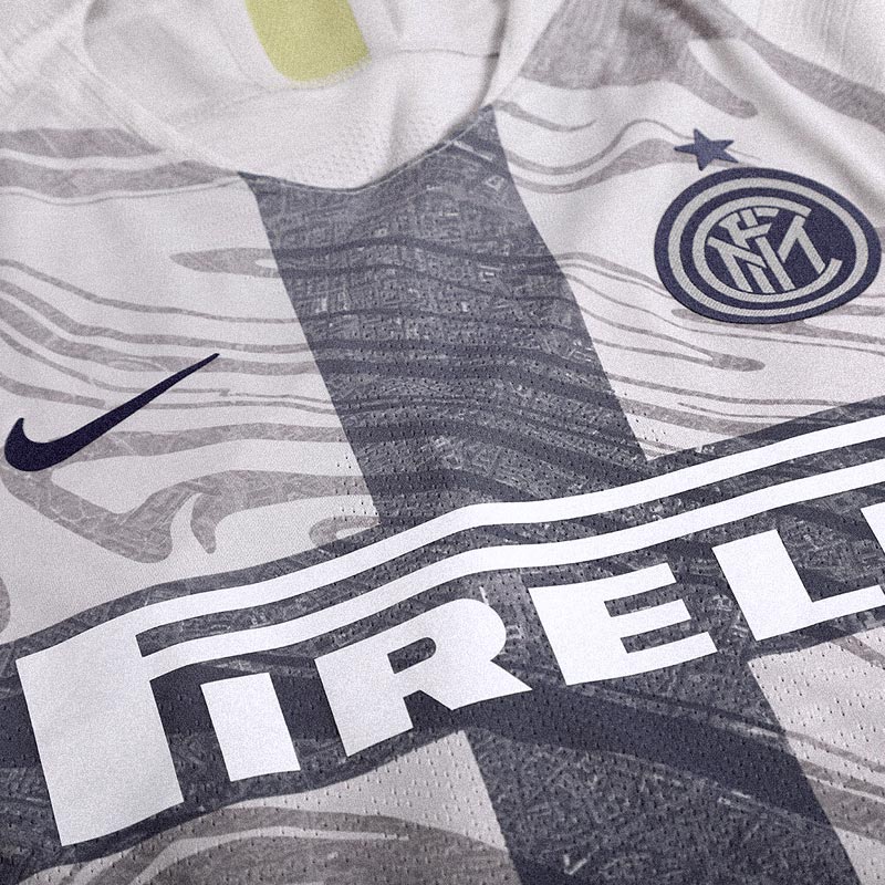 前身頃のプリントはNikeと契約する他のビッグクラブのサードキットと同様に、ホームタウンの航空写真(地図)を使用したグラフィックだが、インテルの場合はそこに一手間加えたデザインに仕上がっている。