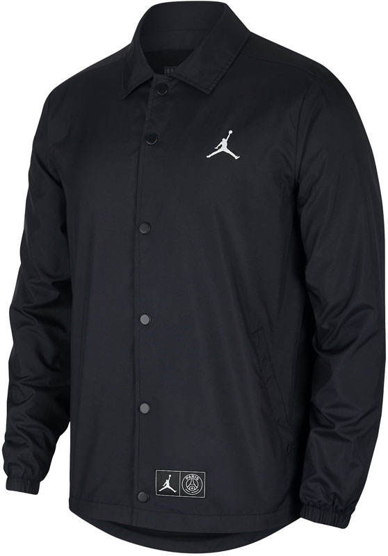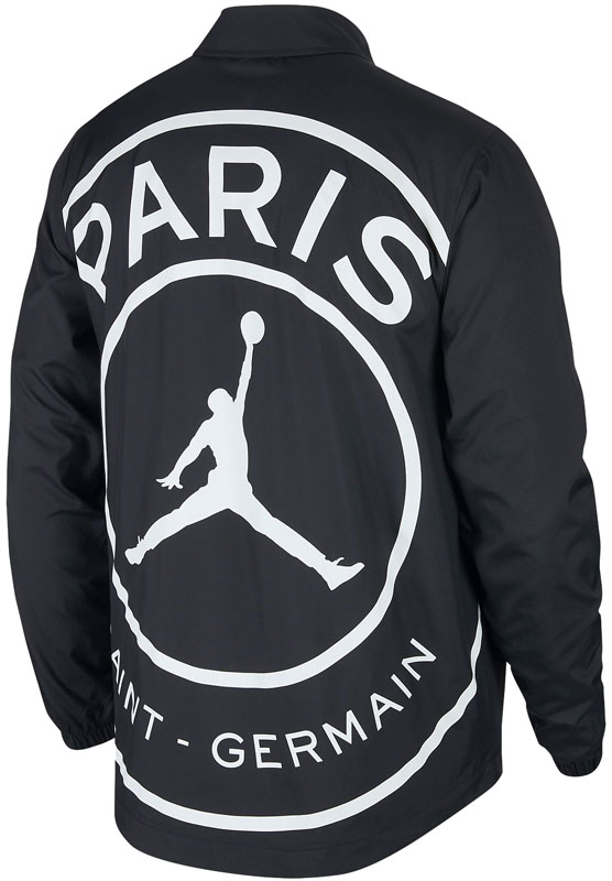 クラシックスタイルのジャケットで、フロントのスナップボタンで自在に開閉。左胸にジャンプマン、背面にPSGとジョーダンのコラボレーションロゴをあしらっている。