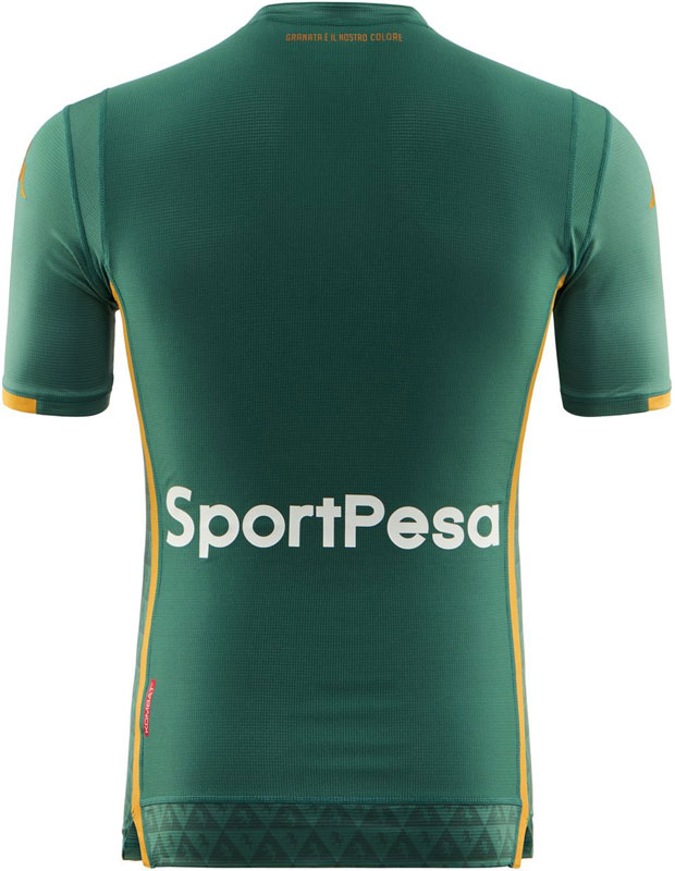 背面の首元には“Granata é Il Nostro Colore(グラナータは我々の色)”をレタリング。腰部分にはオンラインカジノ「SportPesa」のロゴマークが入る。
