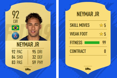 やはりと言うべきか、1人目はネイマール。ゲーム内で最強の能力を持つ選手のひとりだ。