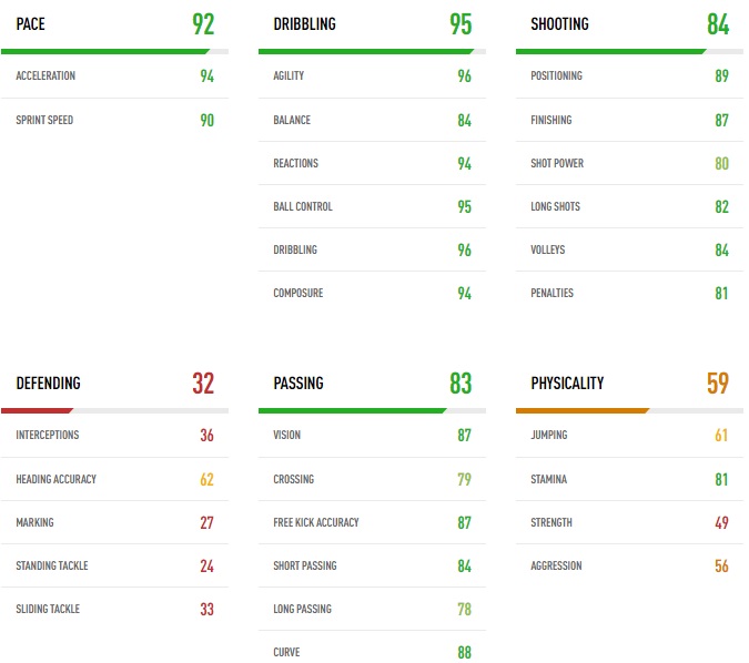『squawka』によれば、今作においてスキルムーヴ★5を持つ両利き選手(利き足ではないウィークフットが★5)は6人しかいないそう。