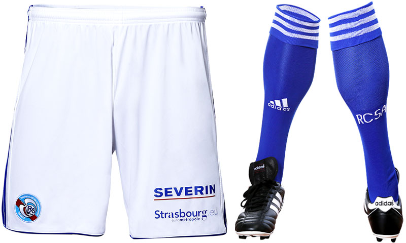 パンツの色はホワイトで、右側にはスポンサーロゴをプリント。ソックスはブルーを基調に、背面にはチーム名の略称“RCSA”のグラフィックが入る。