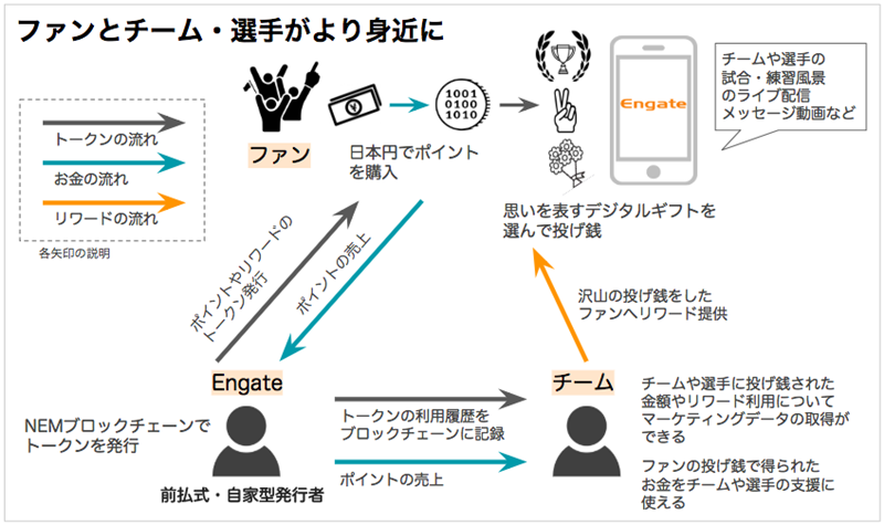 彼らの思いが形となった『エンゲート』。技術的にやや難解なため取っつきづらい印象だが、各チームで行われる予定のローンチキャンペーンでは、試合の来場者に無料で100ポイントが配布される。まずはギフティングを実際に体験することで、その無限の可能性を感じることができるはずだ。