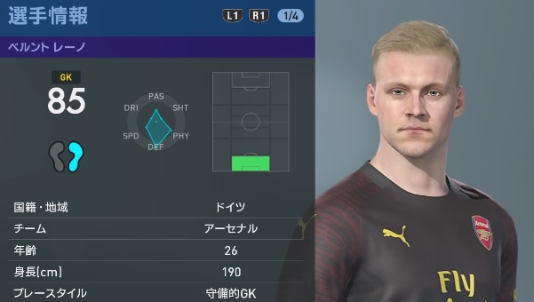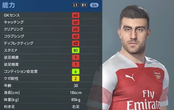 アーセナルの主軸選手、『ウイイレ2019』での能力と顔はこんな感じ