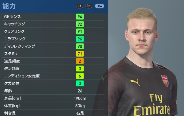 本日対戦するアーセナルとリヴァプール。ここでは、サッカーゲーム最新作『ウイニングイレブン2019』でのアーセナル選手たちの能力設定を見てみよう。