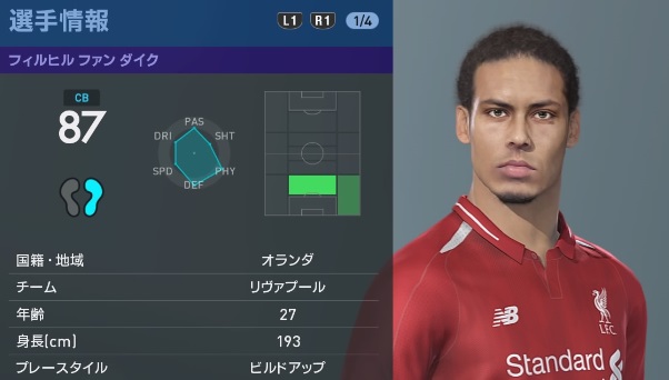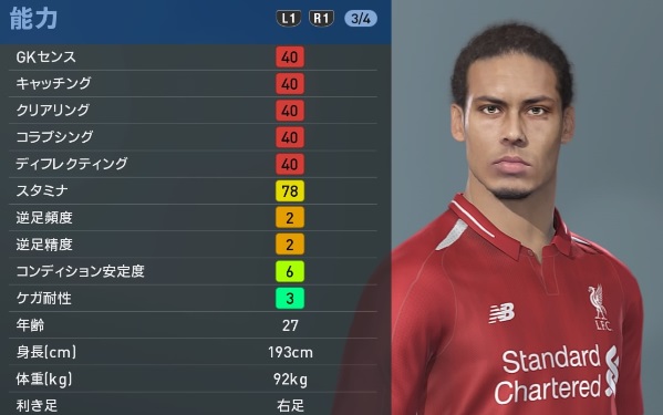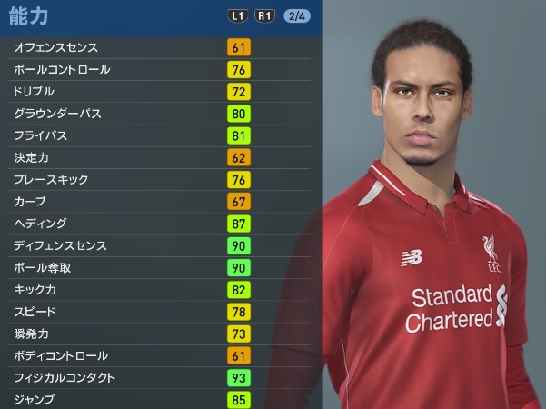 リヴァプールの主軸選手、『ウイイレ2019』での能力と顔はこんな感じ