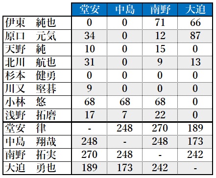 特に、現チームの象徴的な存在となっている中島翔哉とプレーした選手は、小林、浅野以外ただの1分さえもない。