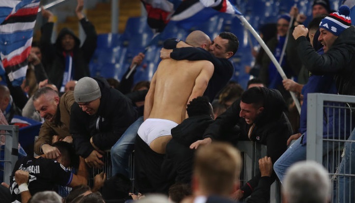 これで勝負ありかと思われたAT9分、サンプMFリッカルド・サポナーラがジャンピングボレーで劇的な同点ゴールを決めたのだ。