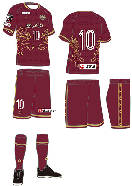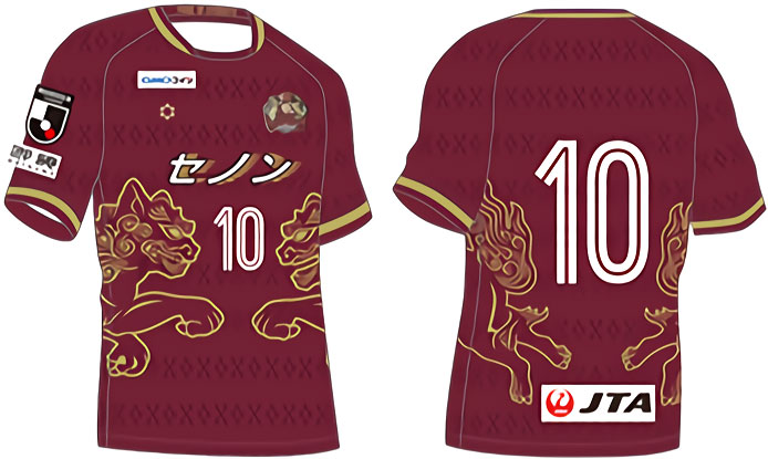 2019シーズンのサプライヤーもSfida(株式会社イミオ)で継続。右袖のホームタウンマークはフォントが独特なデザイン。文字は「沖繩」と、“縄”ではなく旧字体の“繩”を使用している。