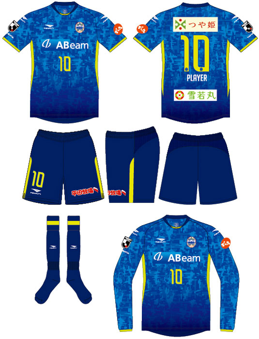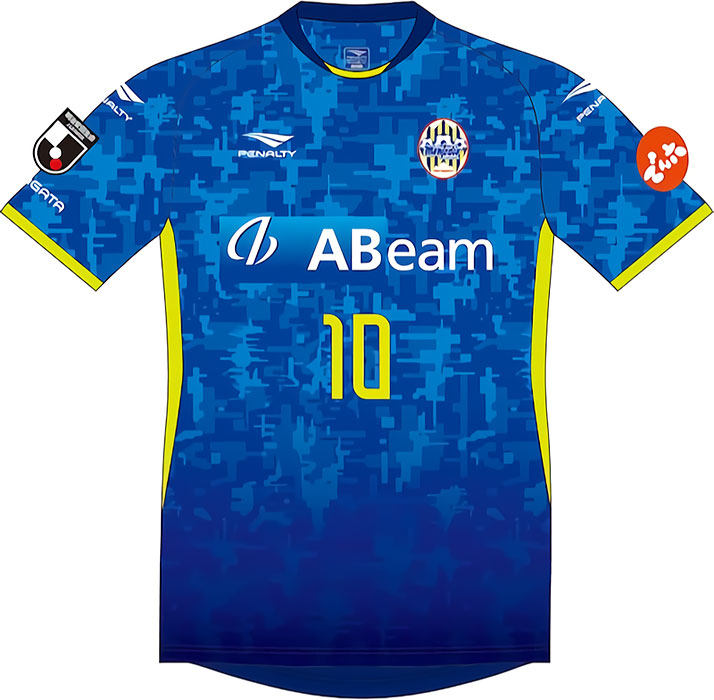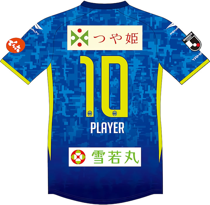 Penalty製第1弾のホームキットには、デジタルカモフラージュ柄を採用。これまでの山形のイメージを覆すようなデザインとなった。ブルーを基調に鮮やかなフラッシュイエローが、どことなくJリーグ参加初期のユニフォームを思わせる。