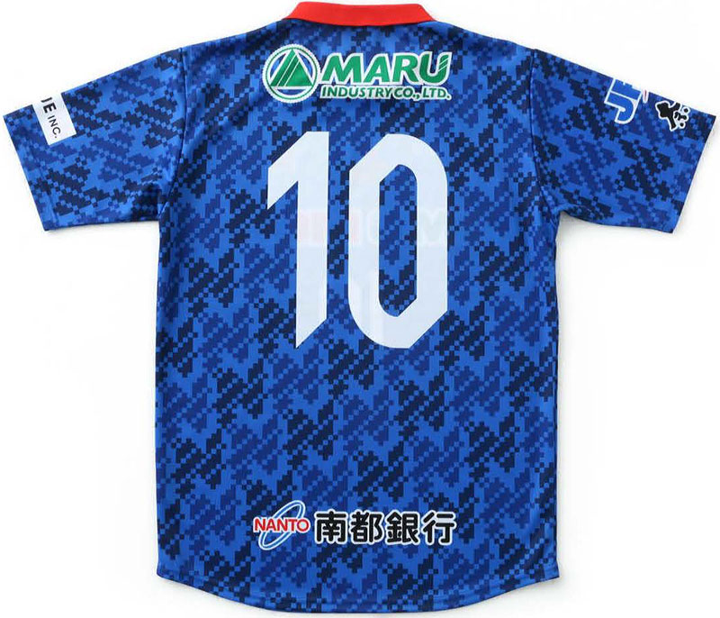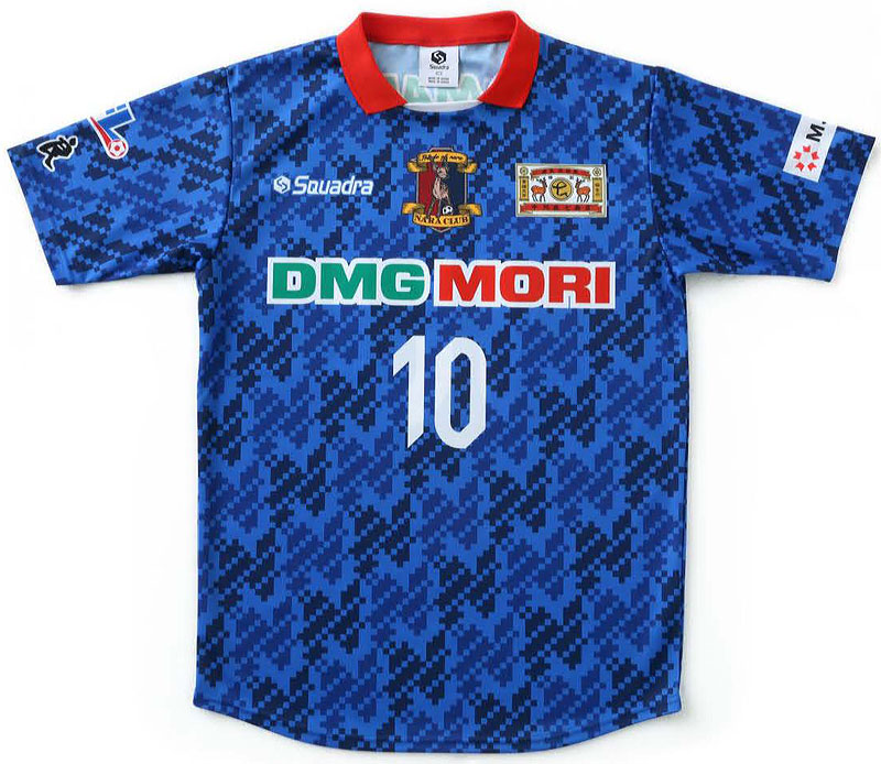 NEWホームキットは伝統のブルーを基調。毎年、日本の伝統紋様をデザインする奈良のユニフォームだが、今季は江戸時代から「西の大和絣(やまとがすり)」と称えられてきた、奈良に伝わる織物の技法を取り入れている。