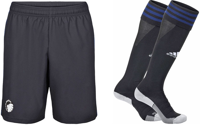 パンツとソックスはブラックを基調とし、ソックスにはブルーのスリーストライプスをあしらう。