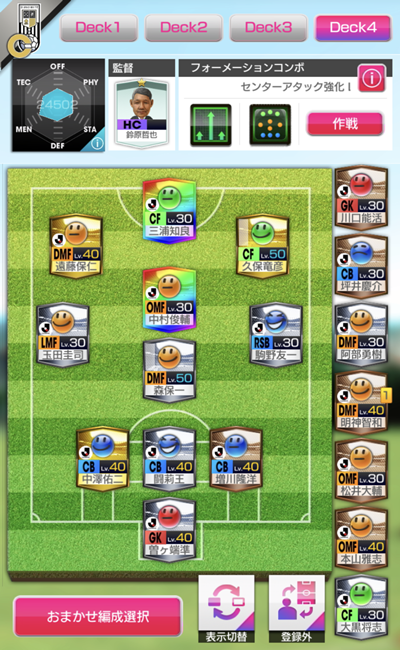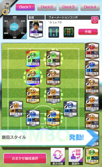無理に適正のない選手や能力の低い選手を起用してコンボを発動するよりは、4つあるデッキにそれぞれの戦術を設定し、相手に応じて戦うと勝率は良くなるだろう。