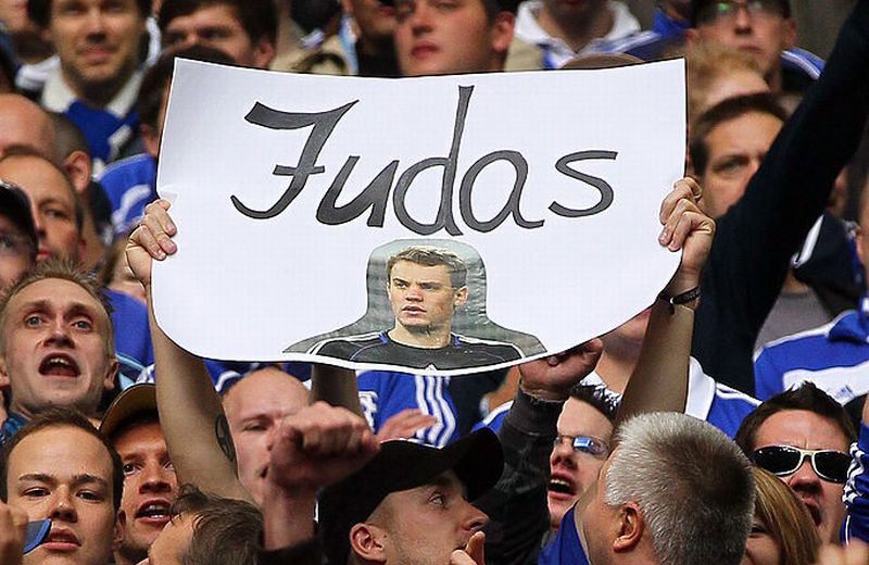 逆に「ビンタされて」話題になったのがマヌエル・ノイアー。2011年に長く所属してきたシャルケ04を離れることを決断し、バイエルン・ミュンヘンへと移籍することが確定していた。当然『裏切り者』とファンからは強烈な批判を浴びた。