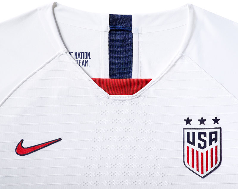 NEWホームキットはシンプルにホワイトを基調としたデザインを投入。大胆な星条旗カラーの2018年モデルとはだいぶ印象が異なる。袖にはレッド/ブルーの国旗カラーをあしらう。
