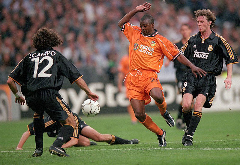 バレンシアもアウェイキットを着用してファイナルに臨んだ。当時のキットサプライヤーは地元スペインのLuanvi(ルアンビ)。まだこの頃のサッカー界には、小規模なサプライヤーでもCL決勝という栄えある舞台に立てるロマンが残されていた。なおバレンシアは翌シーズンからNikeと契約を結んでいる。