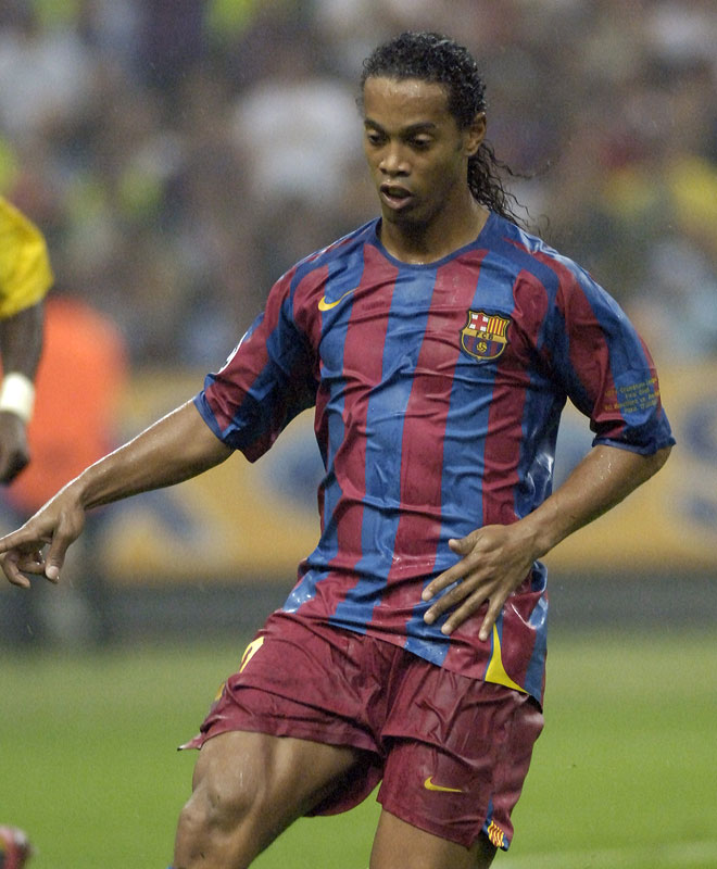 バルセロナのユニフォームは細めのストライプがクラシックなデザイン。05-06シーズンはスーペルコパとラ・リーガも優勝し三冠を達成。記録と記憶に残るキットとなった。なお、胸にロゴを掲出しないユニフォームとしては最後のCL決勝となった。