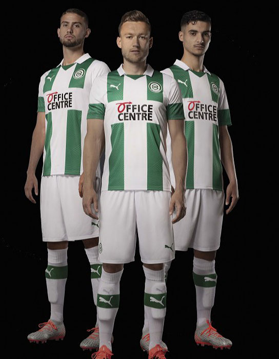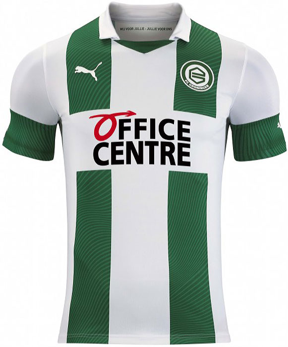 前身クラブを経て現在の「FCフローニンゲン」が誕生した1971年以降、ホームキットの色は一貫して市旗のホワイト/グリーンを採用。今回も伝統のカラーではあるが、ストライプ部分にはマーブル調のグラフィックを落とし込み、これまでになくモダンな雰囲気を醸し出している。胸スポンサーは今季より通販会社「OFFICE CENTRE」のロゴを掲出。