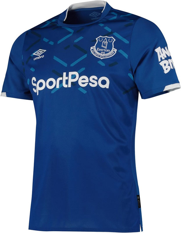 伝統のブルーを基調としたデザインだが、胸から上はユニークなグラフィックが目を引く。このデザインは、ホームスタジアム「グディソン・パーク」東側のBullens Road(ブレンズ・ロード)スタンドに見られる“鉄骨の骨組み”にインスパイアされたものだという。
