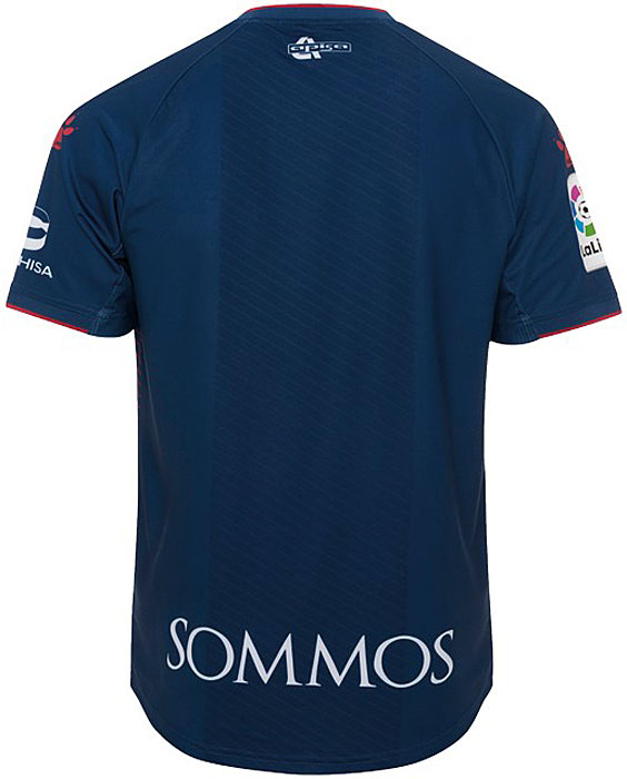 ウエスカは背面方にもスポンサーロゴをプリント。これはホーム、アウェイ、サードの各キットで共通の仕様となる。