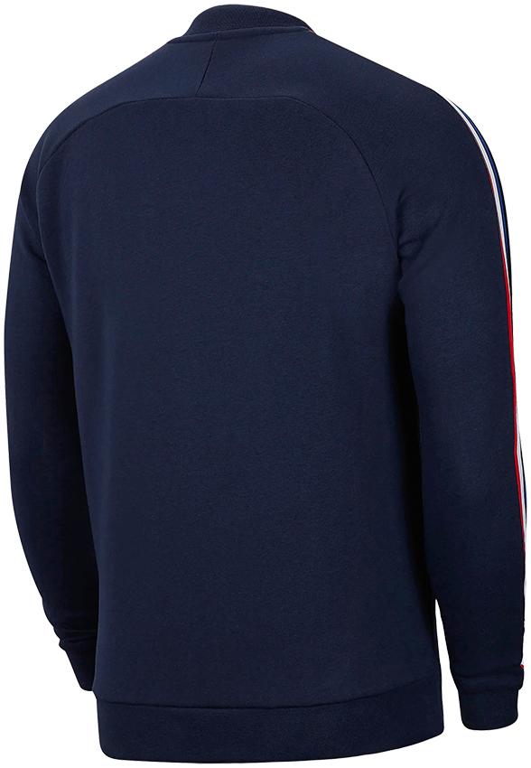主に選手がする柔らかなフリース素材のジャケット。ネイビーを基調にエンブレムをブルーで彩るスタイリッシュなデザインだ。袖にはレッド、ブルー、ホワイトのストライプを配する。素材はコットンがメインの、暖かくて快適な一着。