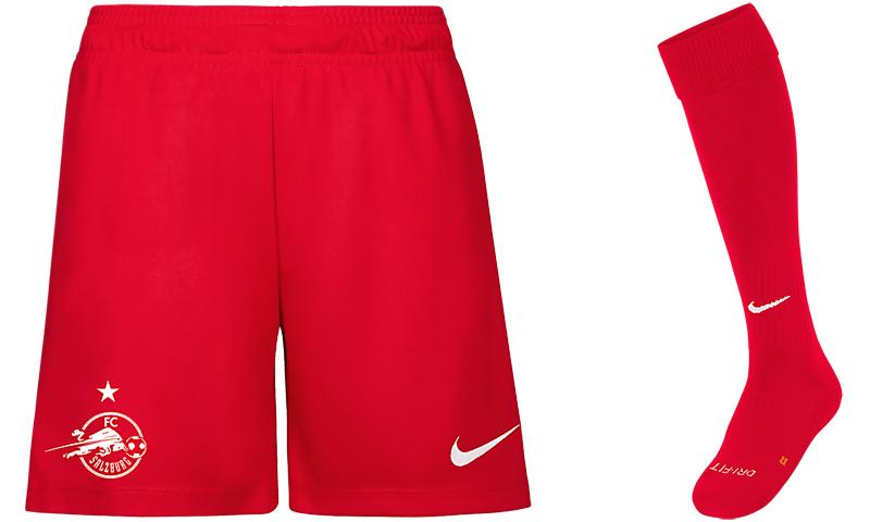 パンツとソックスはどちらもレッドを基調に、ホワイトの差し色という組み合せ。とくにソックスは、エンブレムもチーム名も入らないシンプルなスタイルがRBザルツブルクの特徴だ。