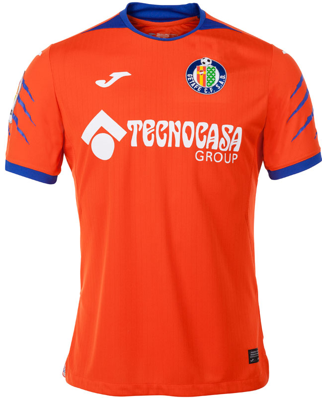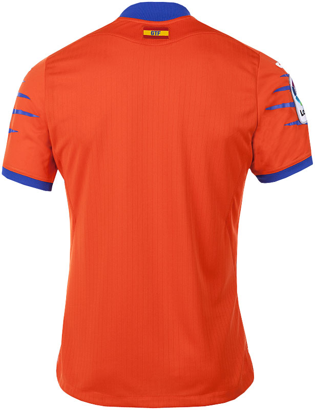 アウェイキットは最近の定番だったレッドではなくオレンジを採用。この色はヘタフェが前回ヨーロッパリーグを戦った10-11シーズンのアウェイと同系色だ。胸スポンサーは「TECNOCASA GROUP」で継続する。