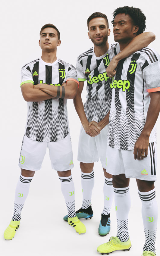 ロンドンのブランドであるパレスは、adidasとのコラボレーションで革新的なユニフォームを制作。ホワイトとブラックの伝統カラーを使用する一方で、袖は斬新なオレンジとグリーンのネオンカラーで彩る。胸スポンサー「Jeep」のロゴや、背面のネームナンバーもグリーンで表現し、鮮烈な一着に。