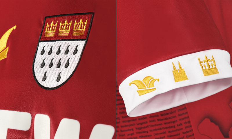 そして袖口にはカーニバルキットならではのデザインとして、関連するアイコンを配置する。アイコンは左からカーニバルハット、ケルン大聖堂、そして街の紋章に描かれている王冠だ。