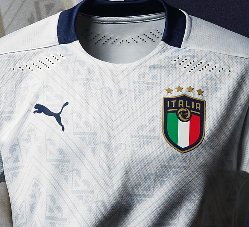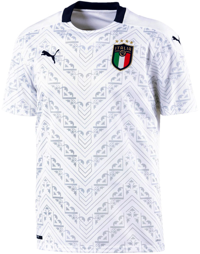 EURO2020での着用がほぼ確実な新アウェイユニフォームは、グリーンのサードキットと同様に、ルネッサンス時代を象徴する柄・模様や建築からインスピレーションを得たデザイン。クラシックとモダンの融合ともいうべき一着だ。