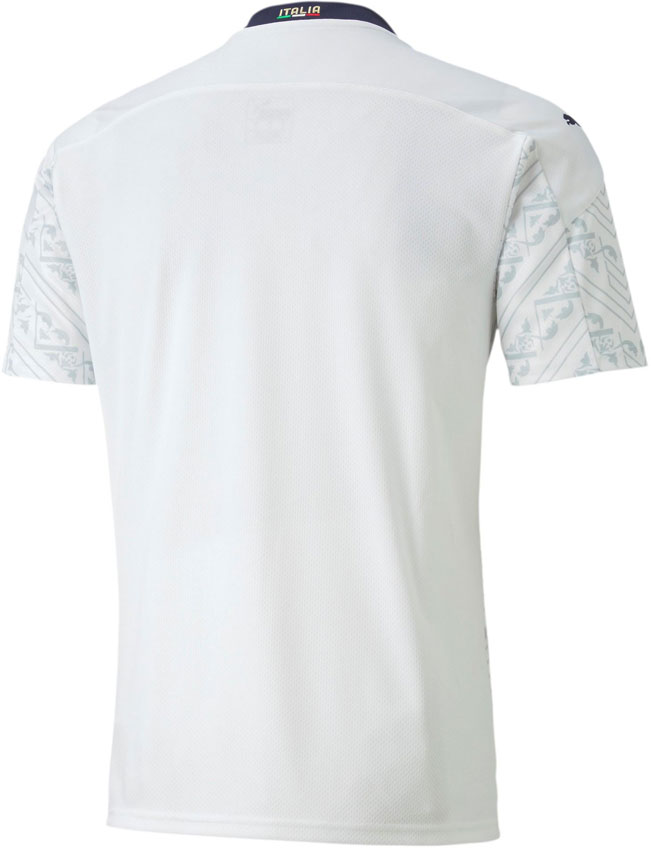 背面はEUROでの着用を考慮し、UEFAの規定に抵触しない程度にルネッサンス柄をあしらう。首元にはお馴染みの国名“ITALIA”と国旗のトリコロールを配する。