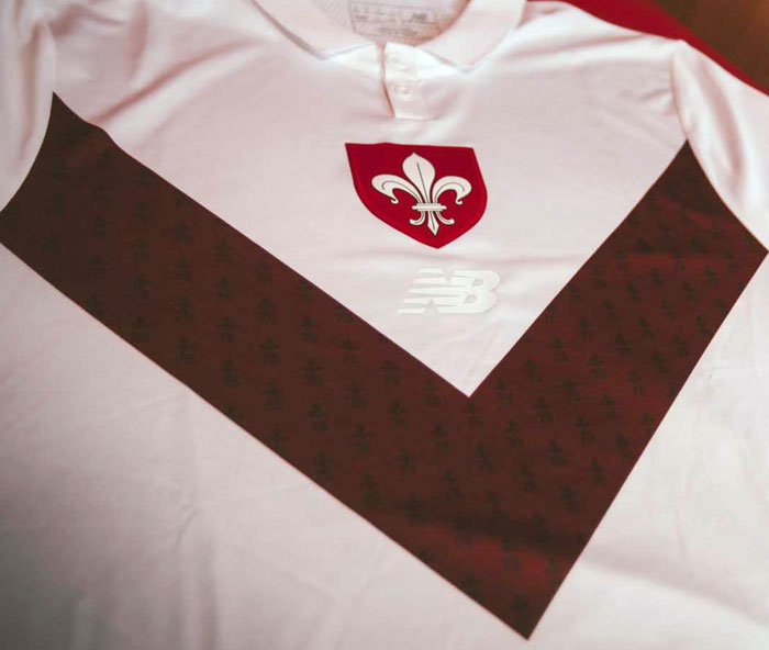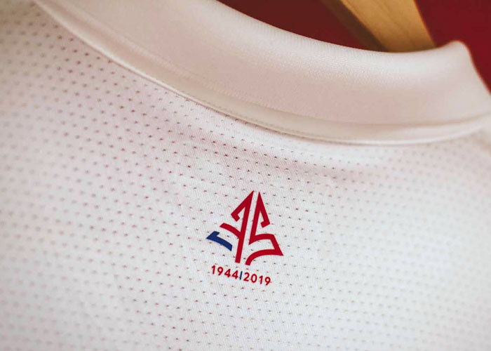 75周年記念ユニフォームは、とてもクラシックな雰囲気に。胸のV字が印象的なこのデザインは、クラブが誕生した1944年当時のユニフォームをモチーフにしている。通常のキットは胸にスポンサー「boulanger」のロゴマークを付けるが、この記念キットでは左袖に位置を変える。