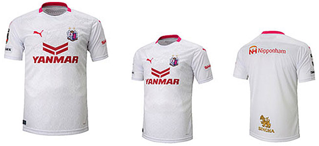 アウェイはホワイトをベースカラーに、基本的にはホームキットと同じ「桜と骨組」のグラフィックをあしらう。