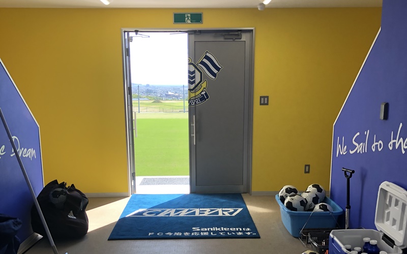 そうすると、スタジアムは船に見立てることができる。選手のクラブハウス…選手入場の時、LDH JAPANのアーティストの方々が作ってくれたFC今治応援ソングがかかって、サビの部分でクラブハウスのドアが開きます。