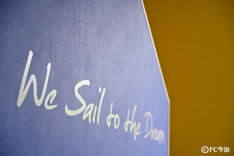 ドアが開くのを待つ選手の横には「We sail to the Dream」(夢に向かって航海する)…造語ですけどそれが壁に刻まれている。