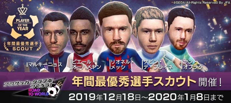 好評配信中のスポーツ育成シミュレーションゲーム『プロサッカークラブをつくろう! ロード・トゥ・ワールド』(以下 サカつくRTW)では、今年1年で素晴らしい活躍を見せた選手たちが登場する“年間最優秀選手スカウト”を12月18日(水)より開催中です。