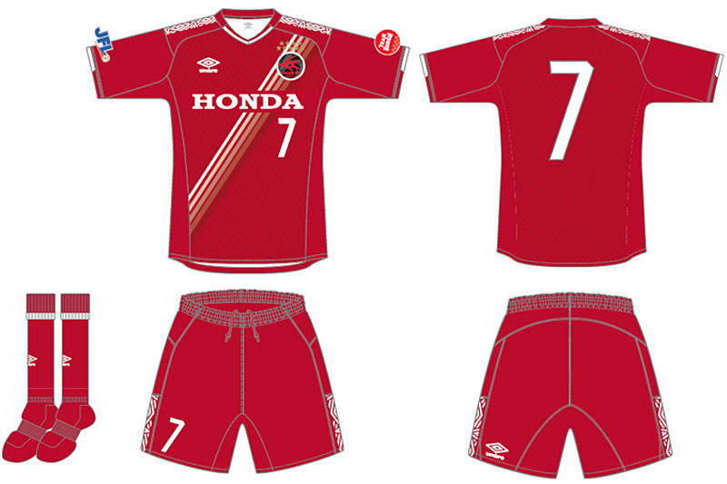 2020年シーズンに向けたNEWホームキットは、伝統のレッドをベースカラー。2021年で創設50周年を迎えるが、その前段階として「新たなステージと未来に繋がるチームへ」という願いを、たすき掛けデザインで表現している。