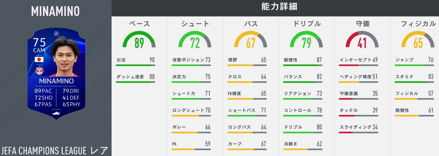 その南野はサッカーゲームFIFA20での能力値が更新されたので変わった部分を見てみよう。まずは初期バーションから。