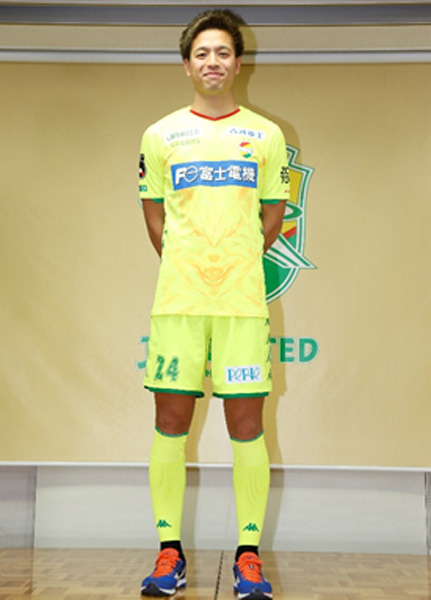 コンプリートはこのような感じで全身同色に。ホームキットのベースカラーは変わらず蛍光イエローを採用。イエローは人間が潜在的に持つ「集中力」と「判断力」を向上させる色だという。(写真:ジェフユナイテッド市原・千葉)
